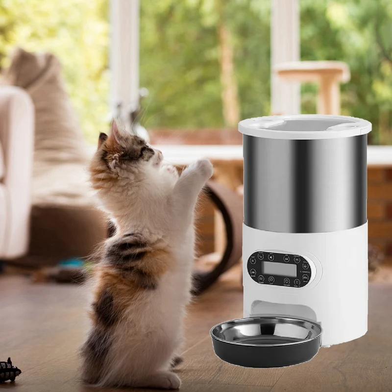 3L Automatic Cats Dispenser Smart Cat Dog Food Feeder Single Stainless Steel Bowls Pets Feeding For Dry Foods