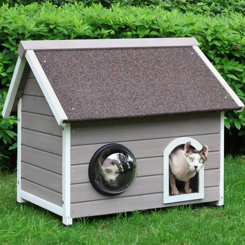 - [Cat Friendly Design] - Dome window provides a wider view for cats. They can always observe the situation outside and enjoy the sunshine. The interior of the house has a removable loft that can accommodate an adult cat to rest on or hide from wildlife.