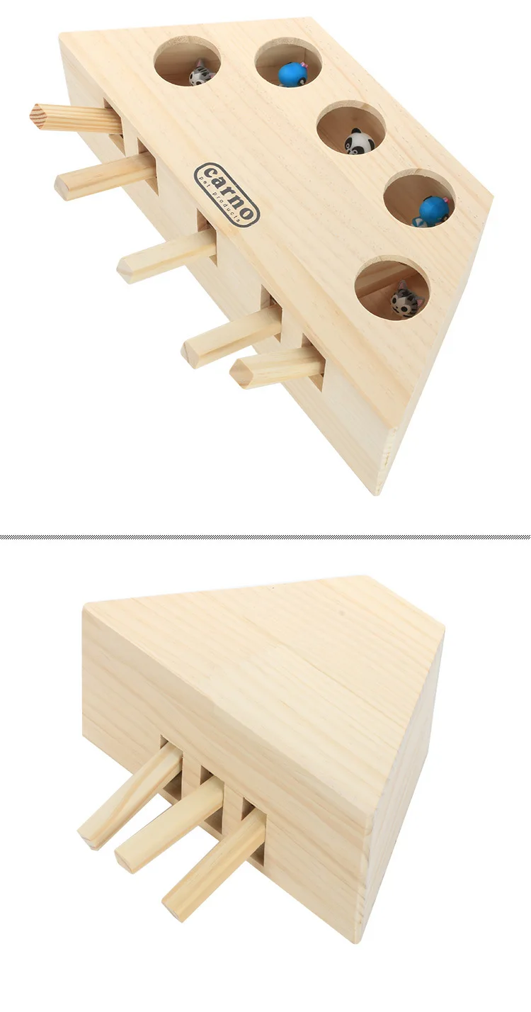 Cat Toy Chase Mouse Solid Wooden Interactive Maze Pet Hit Hamster With Three Five Holes Mouse Hole Catch Bite Catnip Funny Toy
