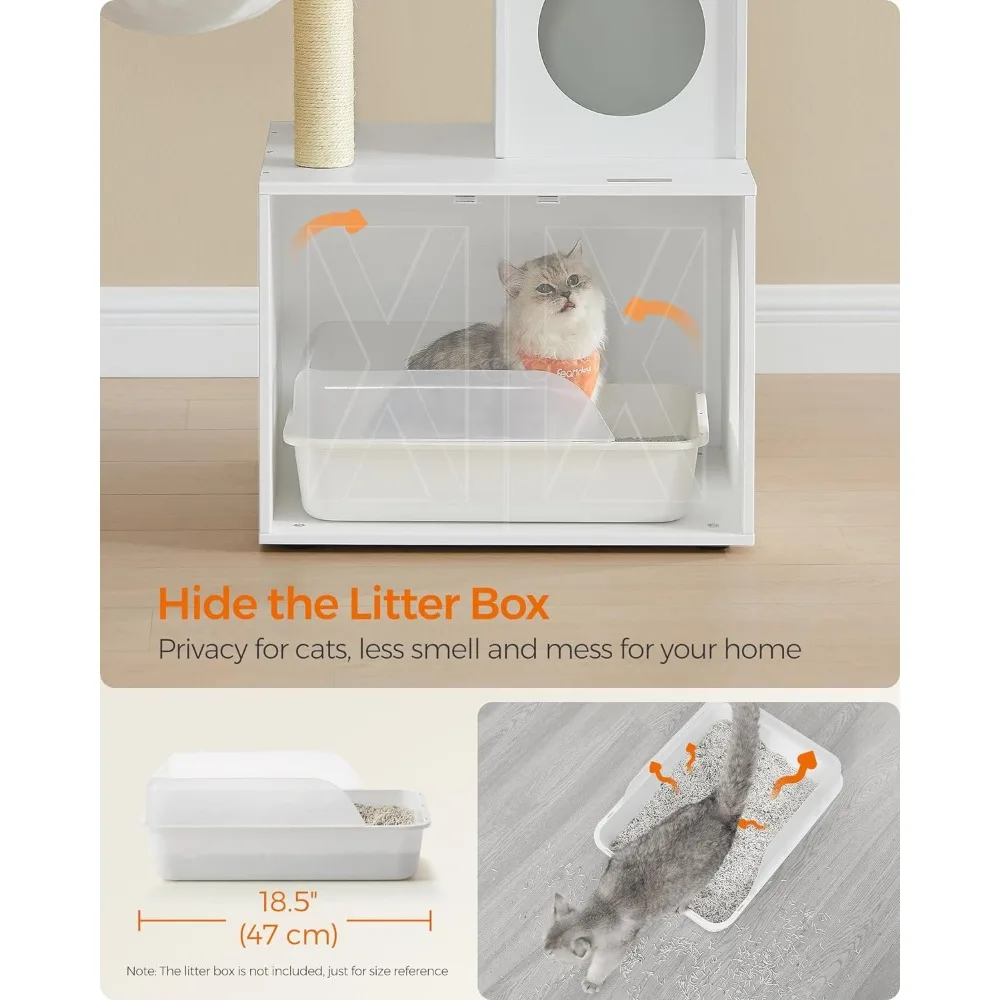 - [2-in-1 Cat Condo] With a cat tree and a cat litter box enclosure in one, it offers an all-in-one spot for your fur friends to observe, play, relax, and answer nature's call while taking up only a 22.6" x 19.7" corner-a true space saver
