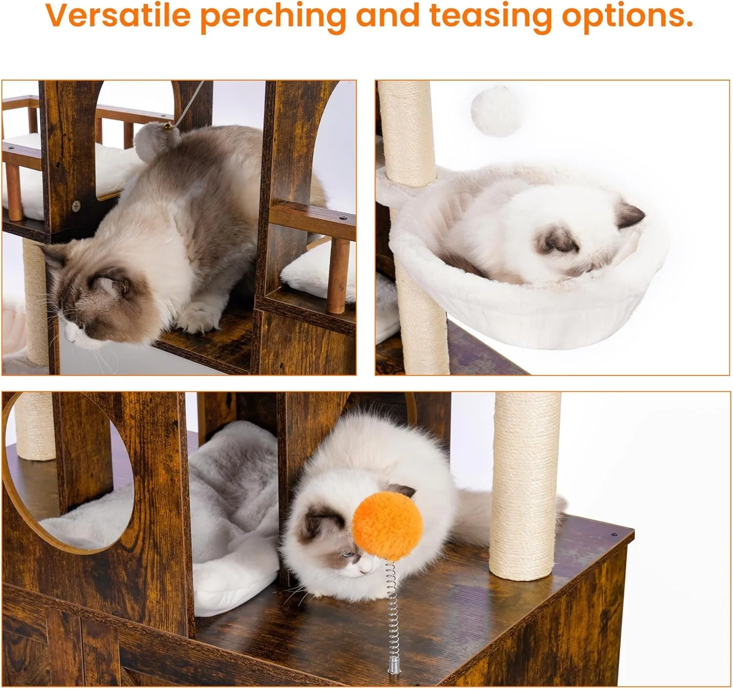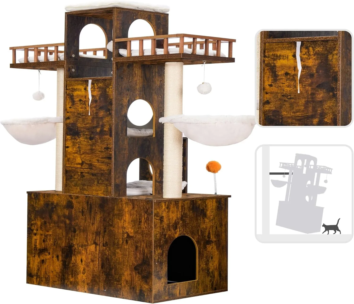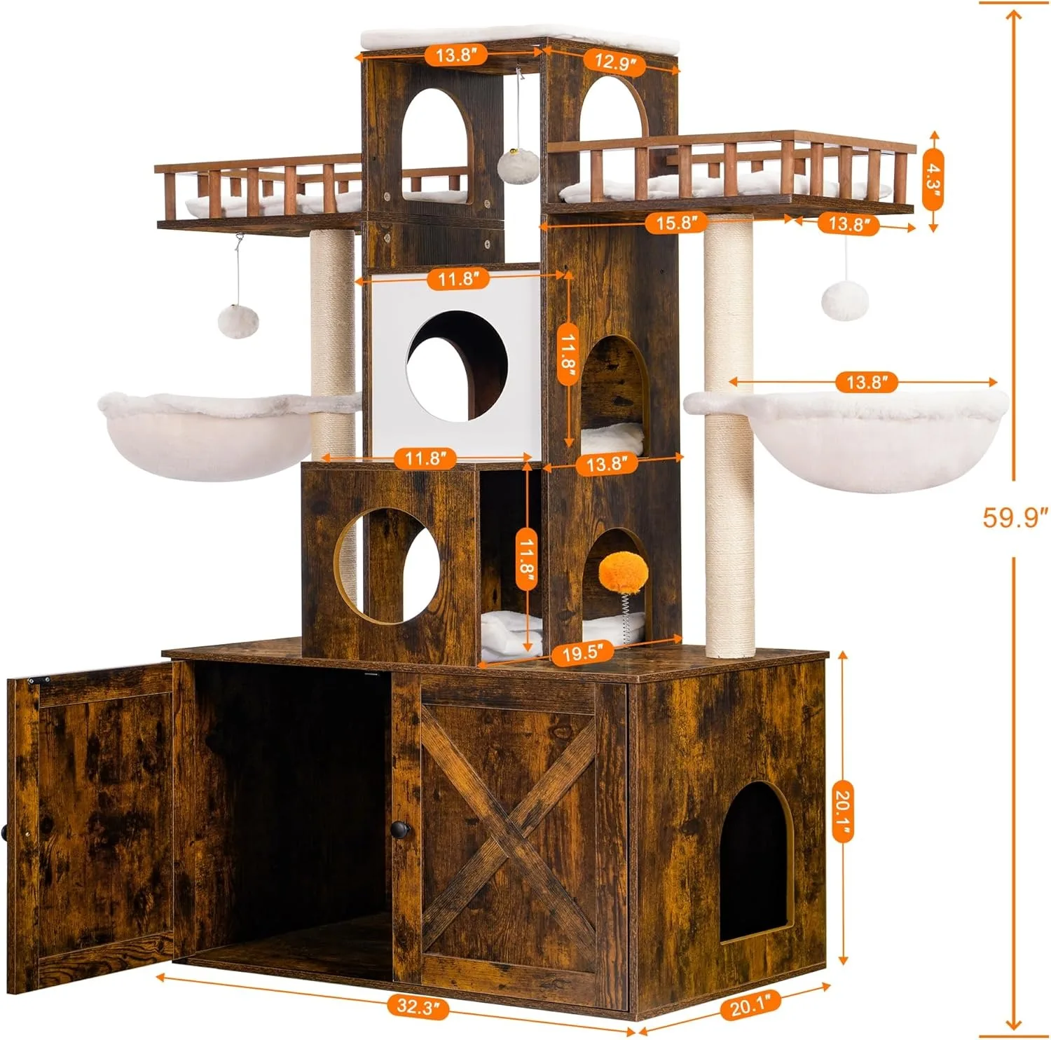 Cat Tree with Litter Box Enclosure for Indoor Big Cat, Cat Tower for Large Cats 20 lbs Heavy Duty, Modern Cat Condo Furniture