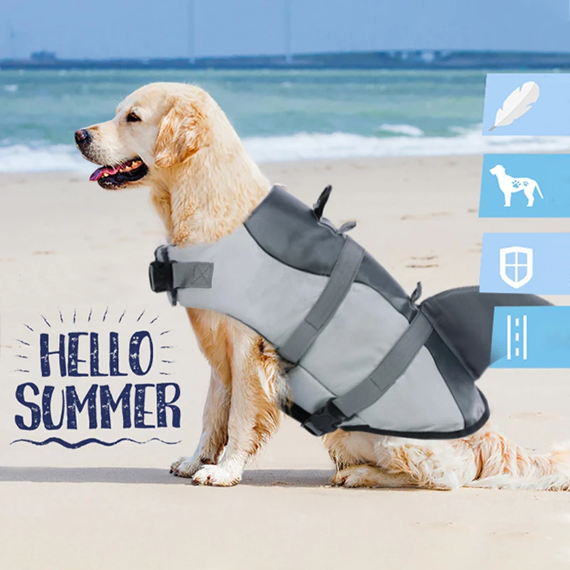 Dog Life Jacket Ripstop Shark Vests Shape Dog Lifesaver With Rescue Handle Pet Safety Swimsuit For Swimming Pool Beach Boating
