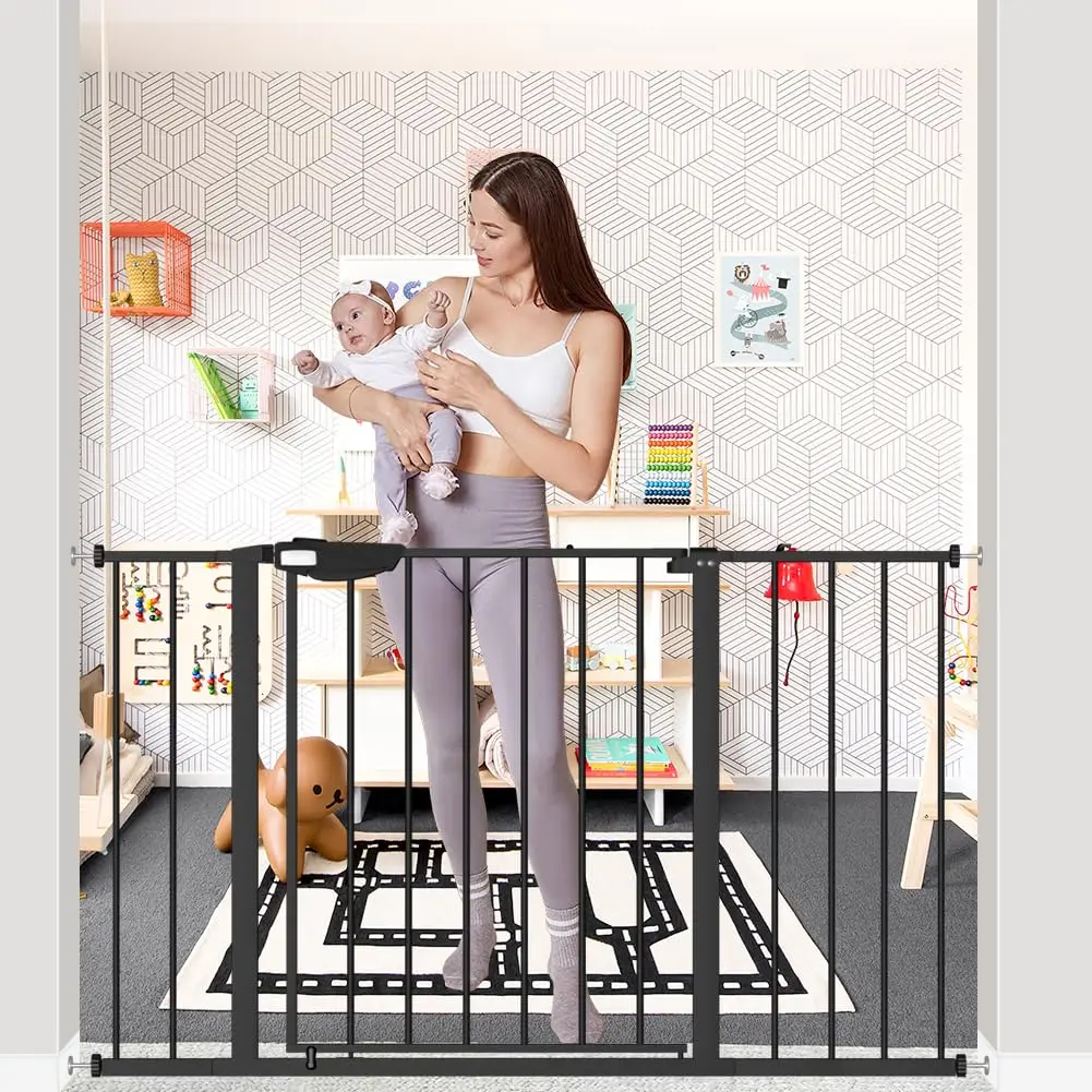 Triple Lock Baby Gate for Stairs Doorways and House 31" to 86" Extra Wide Pressure Mounted Easy Walk Through Auto Close Safety Pet Gate Black 76.77-86.22"