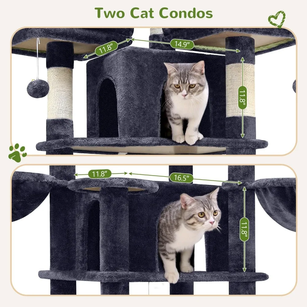 - Spacious Cat Condos: This tall cat tower with spacious cat condos serves as a private retreat where your cats can hide away, rest undisturbed, or engage in solitary activities.