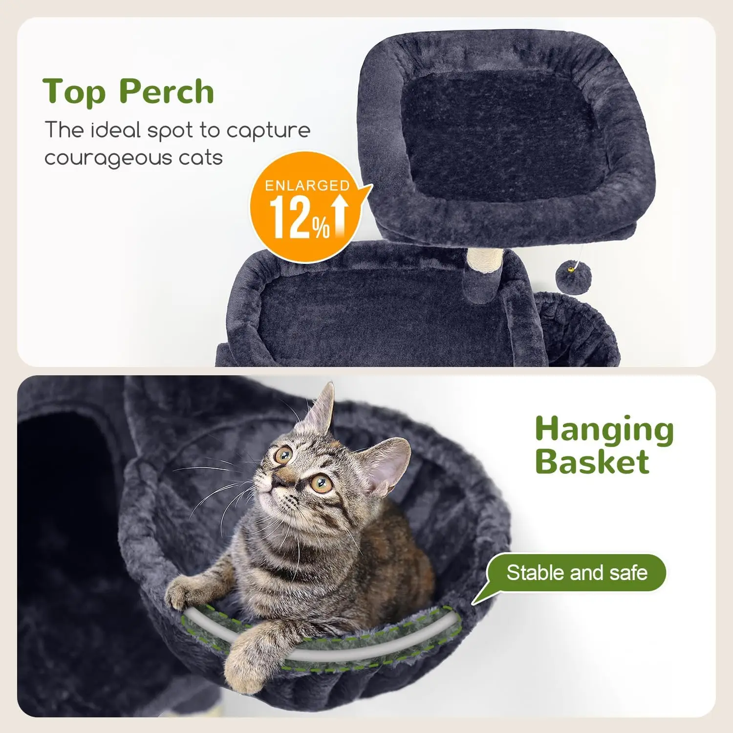 - Enhanced Stability - The thickened and enlarged base(21.7"x 17.7") ensures enhanced stability, keeping the tall cat tree steady and secure for large cats during use