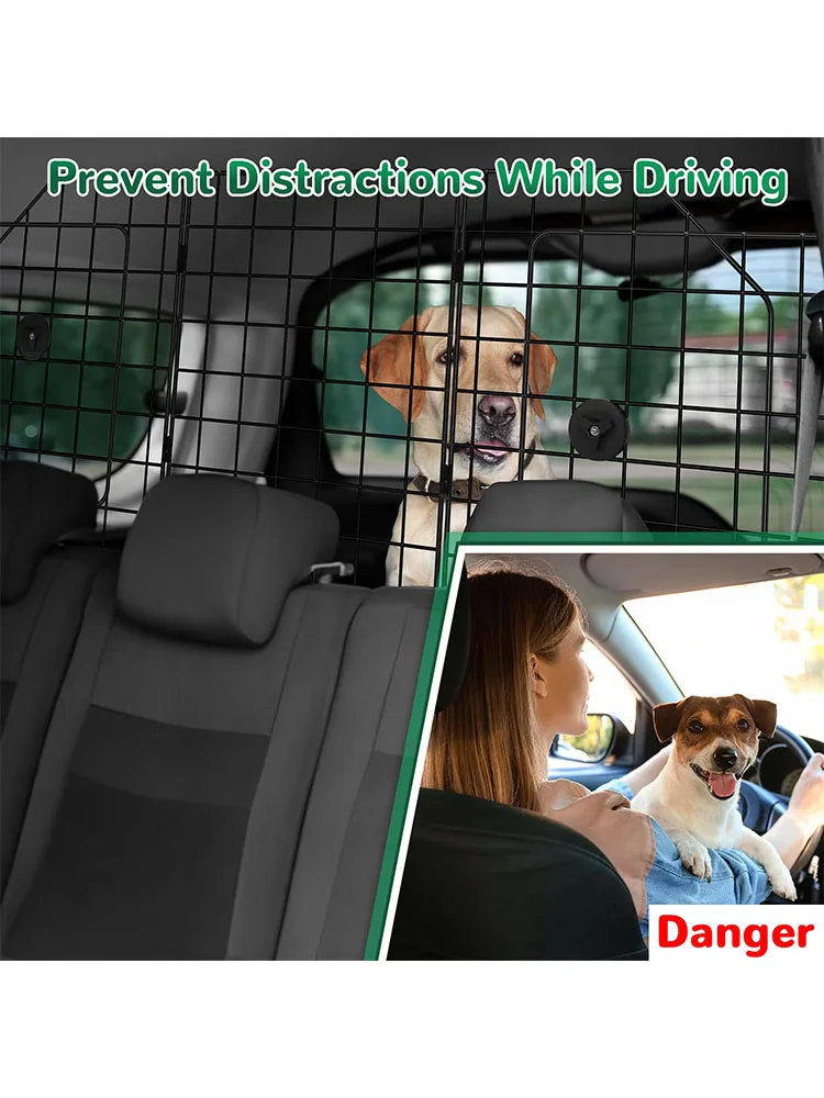 Universal Adjustable Dog Car Barrier, Heavy-Duty Wire Mesh Pet Divider Dog Guard, Back Seat Dog Separator Gate for Cargo Area