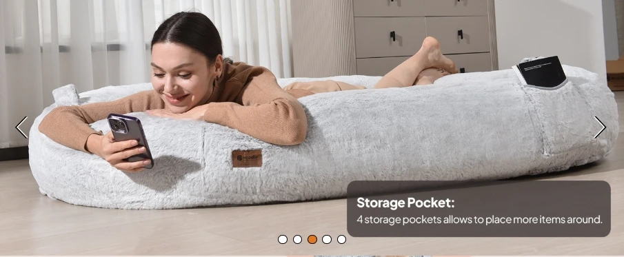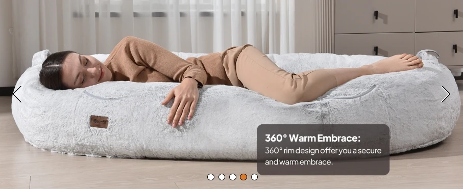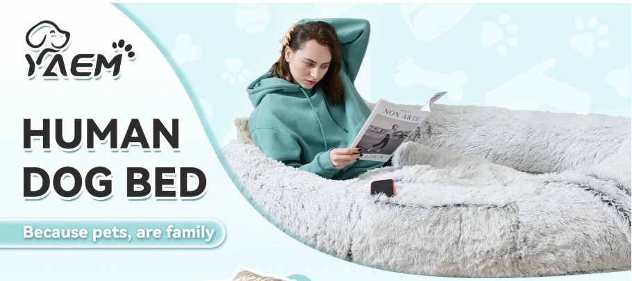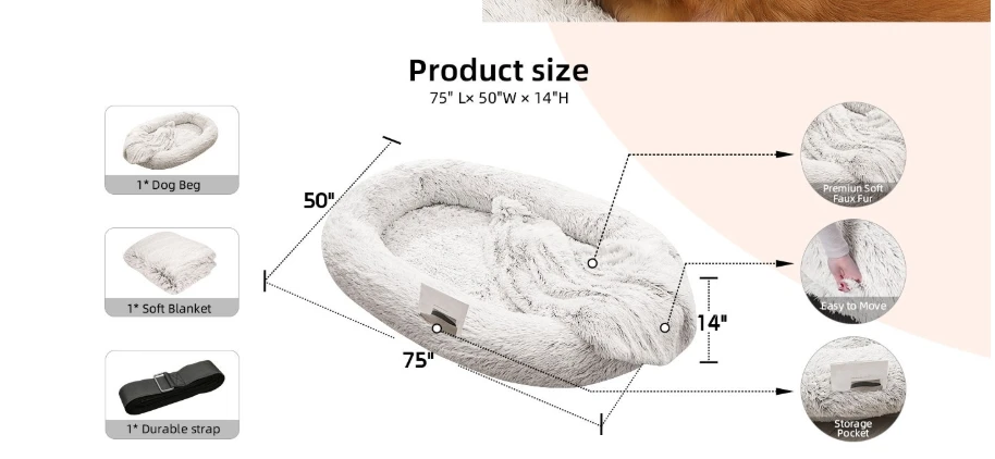 【NON-SLIP AND WATERPROOF】 The surface of the giant dog bed is made of cozy fluffy plush, and the interior is made of waterproof material, which can better protect the internal sponge and effectively prevent moisture and humidity. Meanwhile, the bottom of the people dog bed is made of PVC particle non-slip fabric, which provides safety and stability for pets to play.