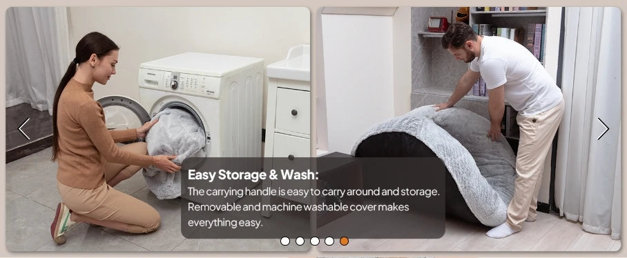 【REMOVABLE MACHINE WASHABLE】 The plush oversize dog bed is designed with removable zippers, unzip the bottom and side zippers and take out the inner filling cotton. Then just put the dog bed cover into machine wash. After drying, just shake it vigorously and the surface will be back to its original fluffy state.