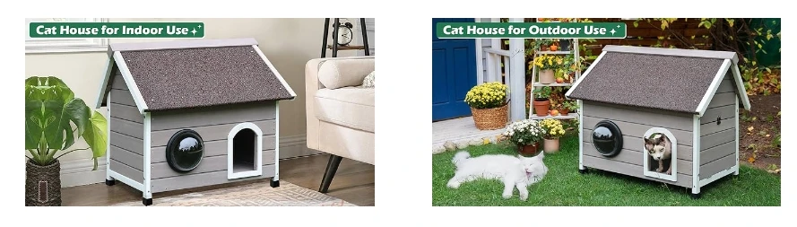 100% Fir Wood: The weatherproof cat house is made of 100% natural fir wood with a water-based coating that is pet-friendly. Thick planks and solid construction ensure it is sturdy for long term use and will not fall off once properly assembled